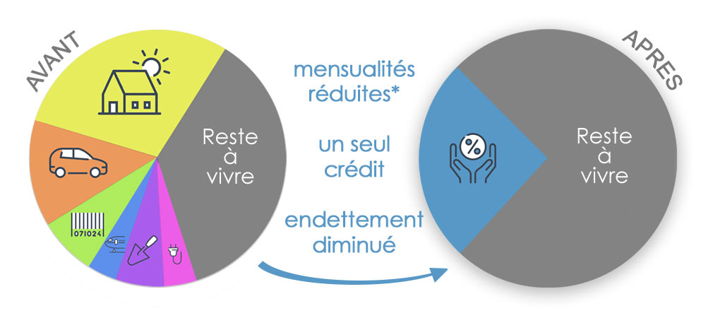 Le rachat permet de fusionner ces dettes en une seule mensualité, souvent plus basse et mieux maîtrisée.
